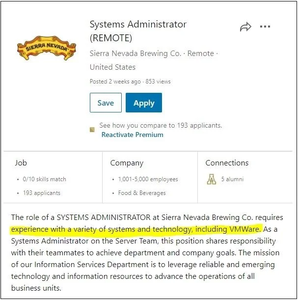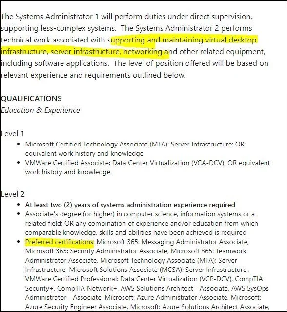 For example — notice that they use VMware as their workspace technology. If you are interviewing for this network administrator position, it’s likely that you’d be asked about your experience with VMWare.